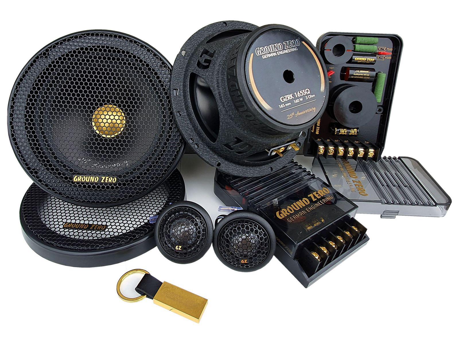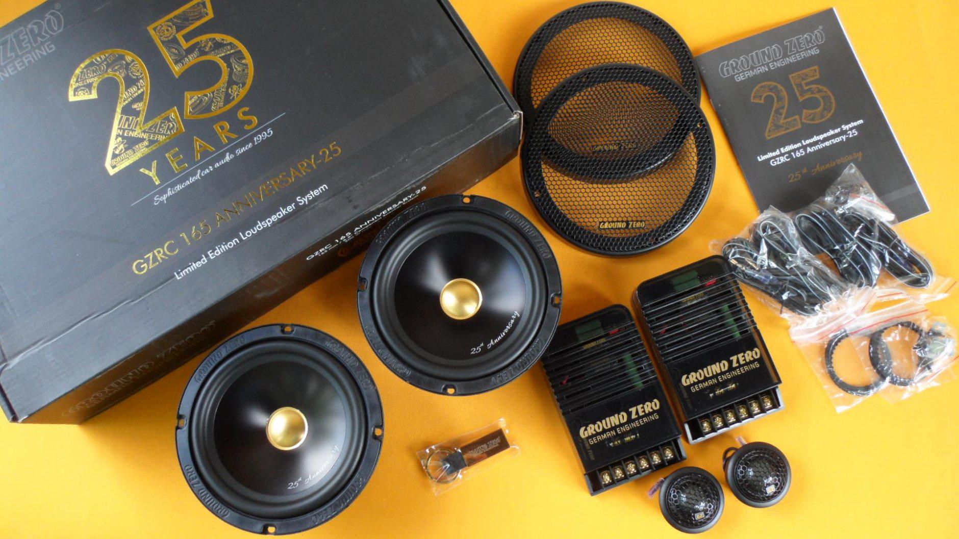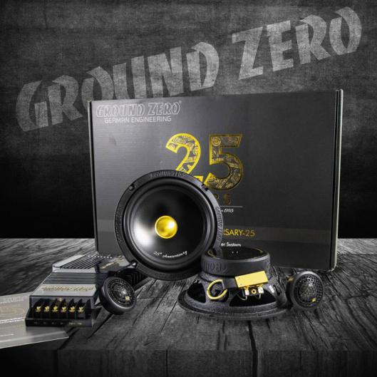 К четвертьвековому юбилею компании GROUND ZERO выпущена лимитированная серия двухполосной компонентной акустики GZRC 165 ANNIVERSARY-25. Это юбилейная версия модели GZRC 165.2SQ из серии Radioactive, популярной у поклонников качественного звука. Отличается она от базовой «золотым» дизайном компонентов, 28-мм твитером (у базовой версии 25 мм), кроссоверами на заказных конденсаторах Mundorf.
