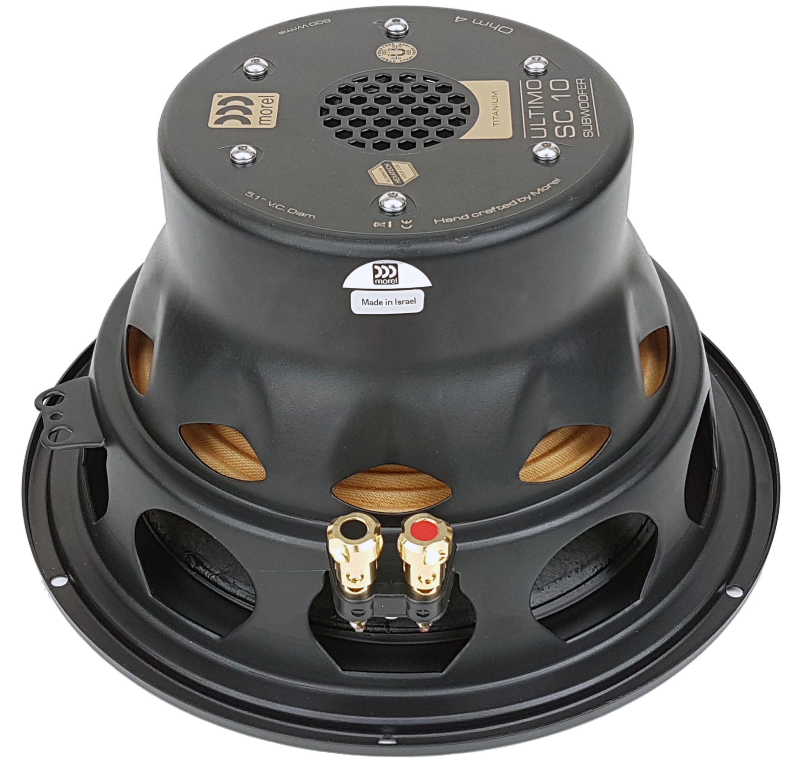 В новом Ultimo Titanium SC использованы некоторые из лучших технологических особенностей сабвуфера Ultimo Titanium, например, титановый корпус звуковой катушки Morel. Исключительно жесткий и легкий, титан улучшает динамику сабвуфера для еще более быстрого переходного отклика, снижения искажений и увеличения мощности.